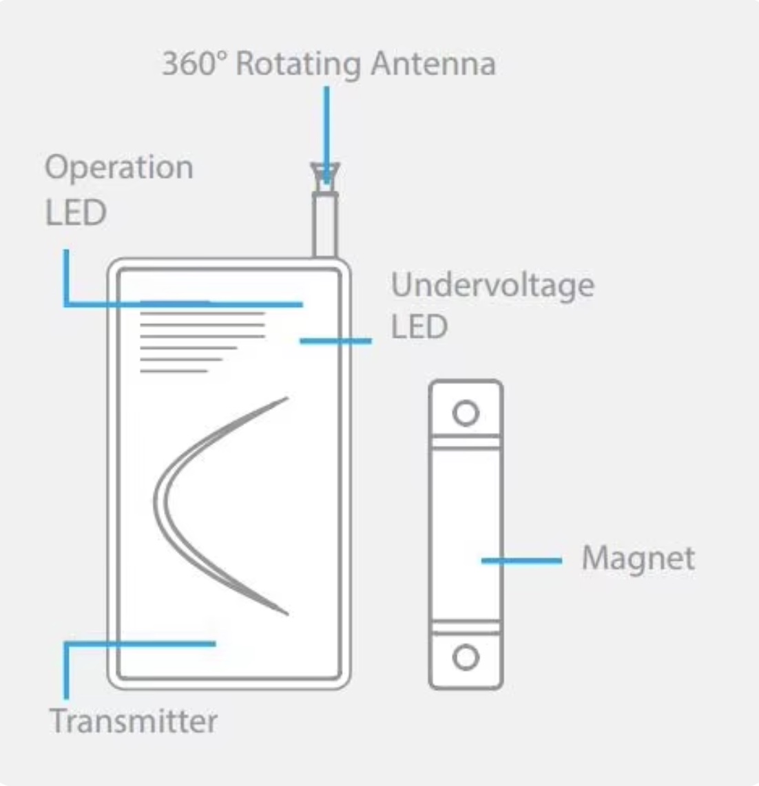 Batteriebetriebener Tür/Fenster Fernkontakt, verbunden über Radiofrequenz.