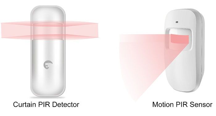 Vorhang-Bewegungsmelder, verbunden über Radiofrequenz. Horizontaler Sensorbereich ideal für kleine Ecken und hinter Vorhängen. Kompatibel mit SECUAL Alarmsystemen.