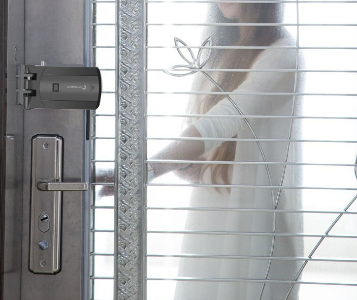 Es verfügt über eine praktische Auf/Zu-Taste am Schloss selbst. Es gibt keinen Bolzen in der Tür selbst und keine Notwendigkeit für ein Loch im Türrahmen, so dass es auch bei einer dünnen Tür verwendet werden kann. Da das Funkschloss auf der Innenseite der Tür oder Fenster montiert ist, ist es von außen nicht sichtbar und absolut manipulationssicher.