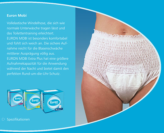 EURON MOBI ist für mittlere bis schwere Inkontinenz geeignet.