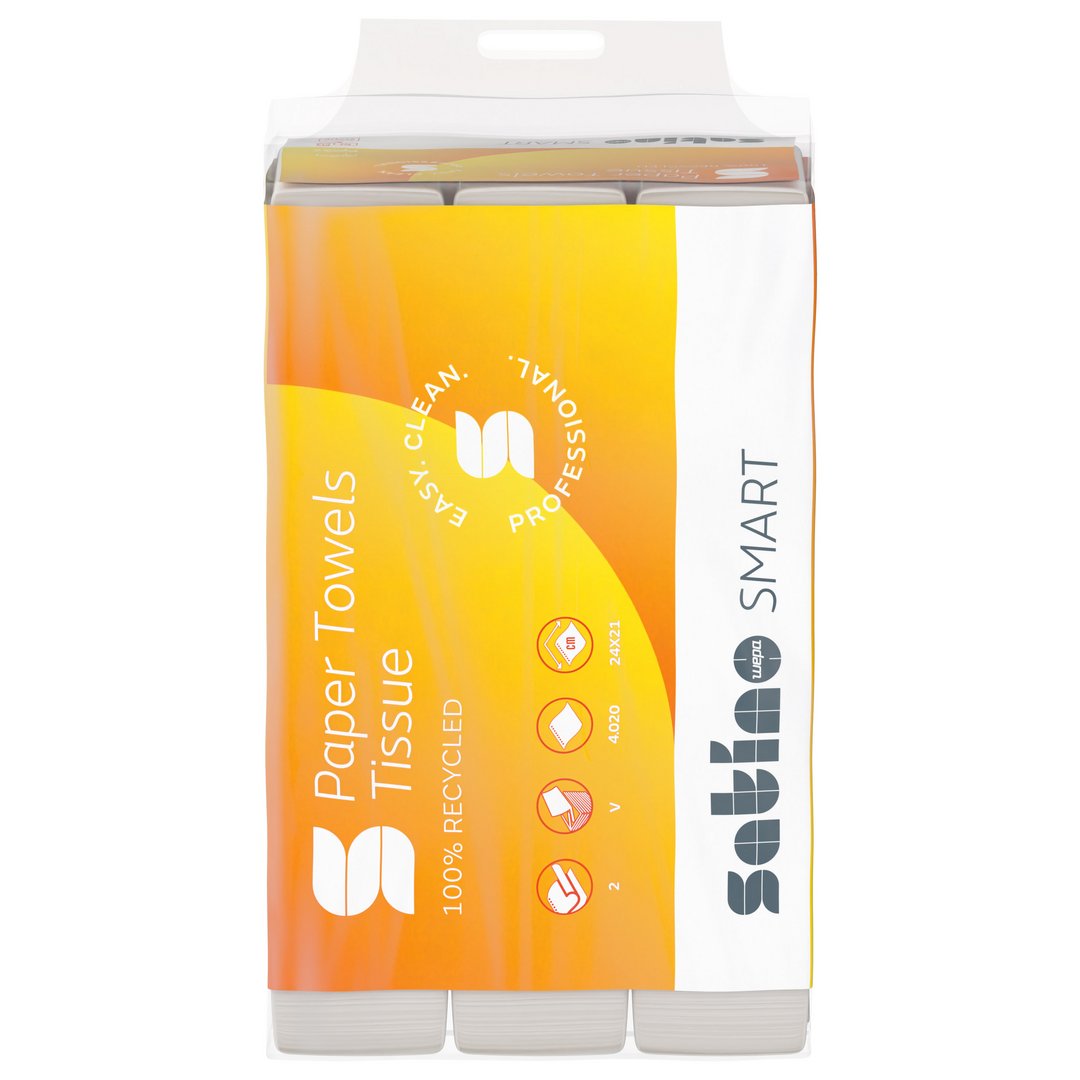 Handtuchpapiere aus 100% Recycling. Gut in Saugkraft und Reinigungsverhalten.