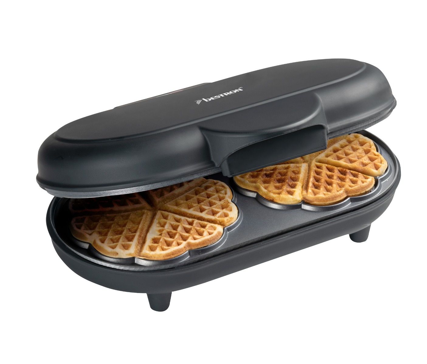 • Doppel Herzwaffelautomat für 2 x 5 herzförmige Waffeln• Hitzebeständiges Gehäuse• Antihaftbeschichtung• Automatische Temperaturregelung• Kontrollleuchte für “gebrauchsfertig” und “An/Aus”• Platzsparende, senkrechte Aufbewahrung• Praktisches Kabelaufwicklungssystem• Einschließlich Rezeptvorschläge in der Gebrauchsanweisung