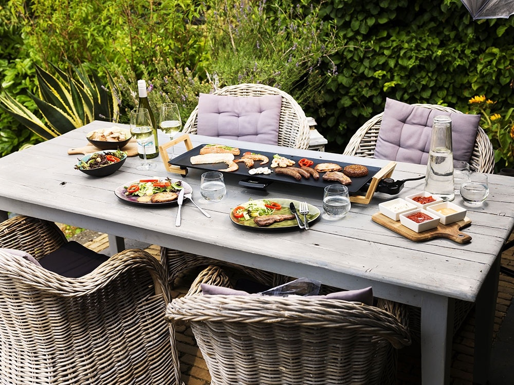 • Gesundes Grillen mit Familie und Freunden • Für u.a. Fleisch, Fisch, Gemüse, Kartoffeln • Kein Öl oder Fett nötig, dank Grillplatte mit Antihaftbeschichtung • Mit Handgriffen aus echtem Bambus • Extra große Grillplatte: 70 x 23 cm • Abnehmbarer, einstellbarer Temperaturschalter mit Kontrollleuchte • Auffangrinne und -schale für überschüssiges Fett oder Grillrückstände • Kann im Innenbereich und im Freien verwendet werden • Leicht zu reinigen • Sichere Nutzung dank rutschfesten Standfüßen
