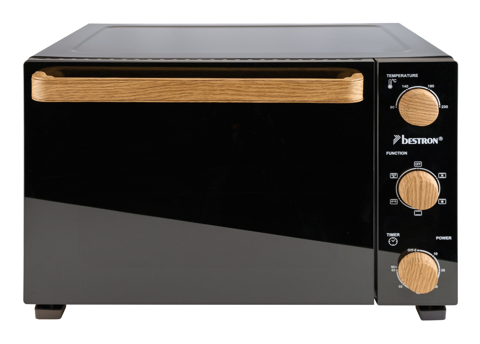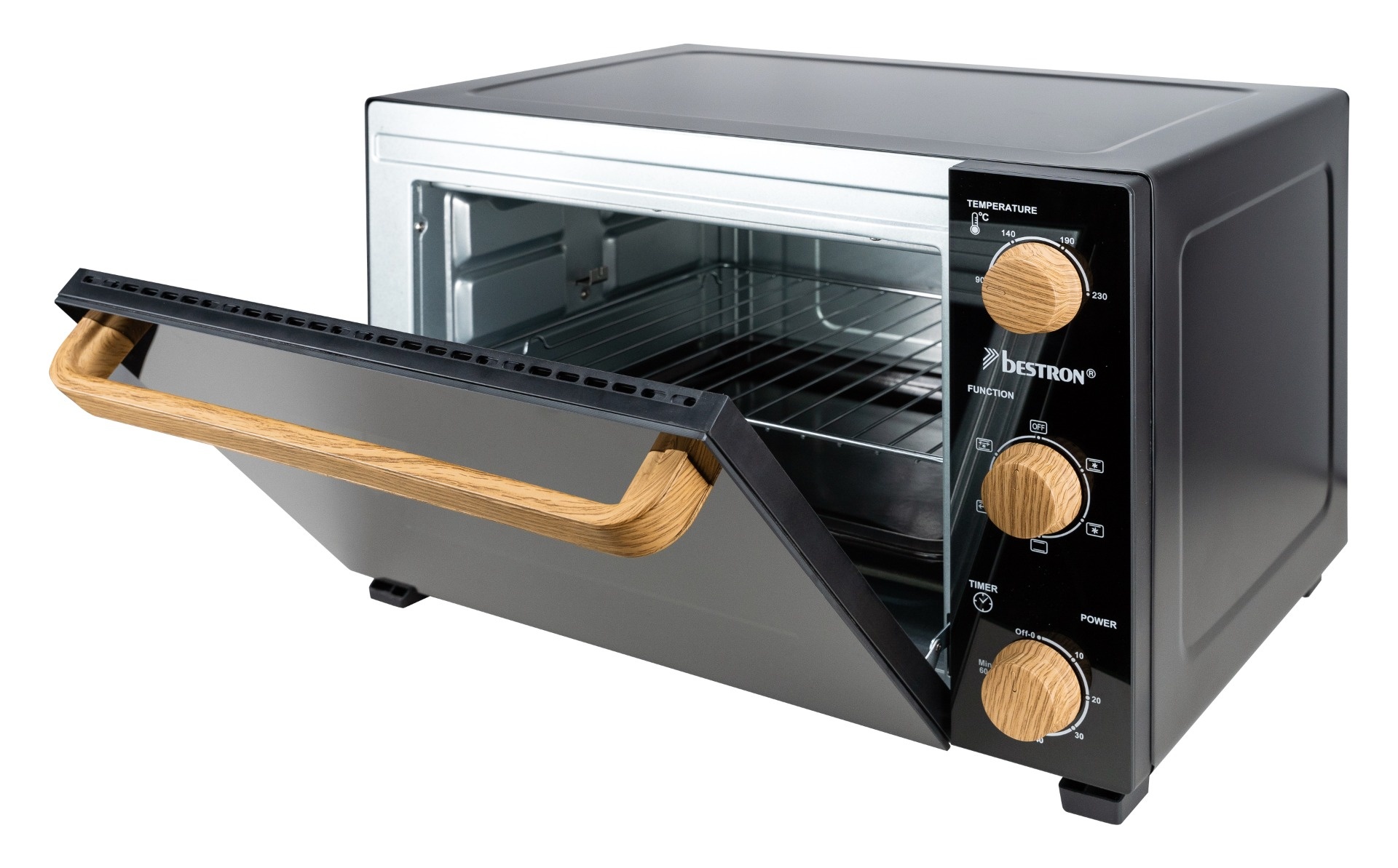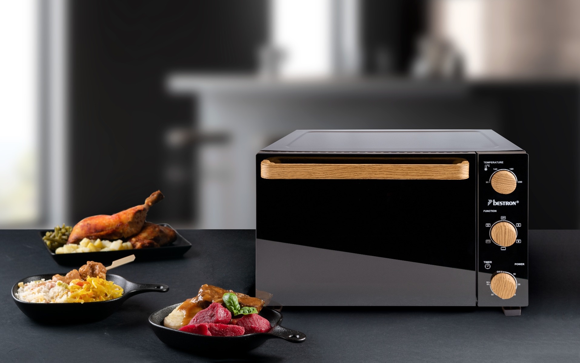 • Optimale Gehäuseisolation für geringe Oberflächentemperatur• Ofentür aus Doppelwandglas mit hitzebeständigem Handgriff und 3 Türpositionen • 6-Stufen-Wahlschalter für:- Oberhitze + Unterhitze + Umluft- Oberhitze + Umluft- Oberhitze + Unterhitze- Oberhitze + Drehspiess- Oberhitze + Unterhitze + Umluft + Drehspiess- Off (Aus)• Einstellbare Temperatur bis 230°C• 60 Minuten Timer mit Signalton, schaltet automatisch aus• Garraum ca. 31 Liter, mit Beleuchtung• 4 Edelstahl Heizelemente, ca. 1500W• Mit Pizzastein (Ø 30,5 cm) zum authentischen, knusprigen Pizzabacken• Praktischer Drehspiess für Fleisch und Geflügel• Mit Grillrost und emailliertem Backblech und praktischem Handgriff• 3 Einschubebenen