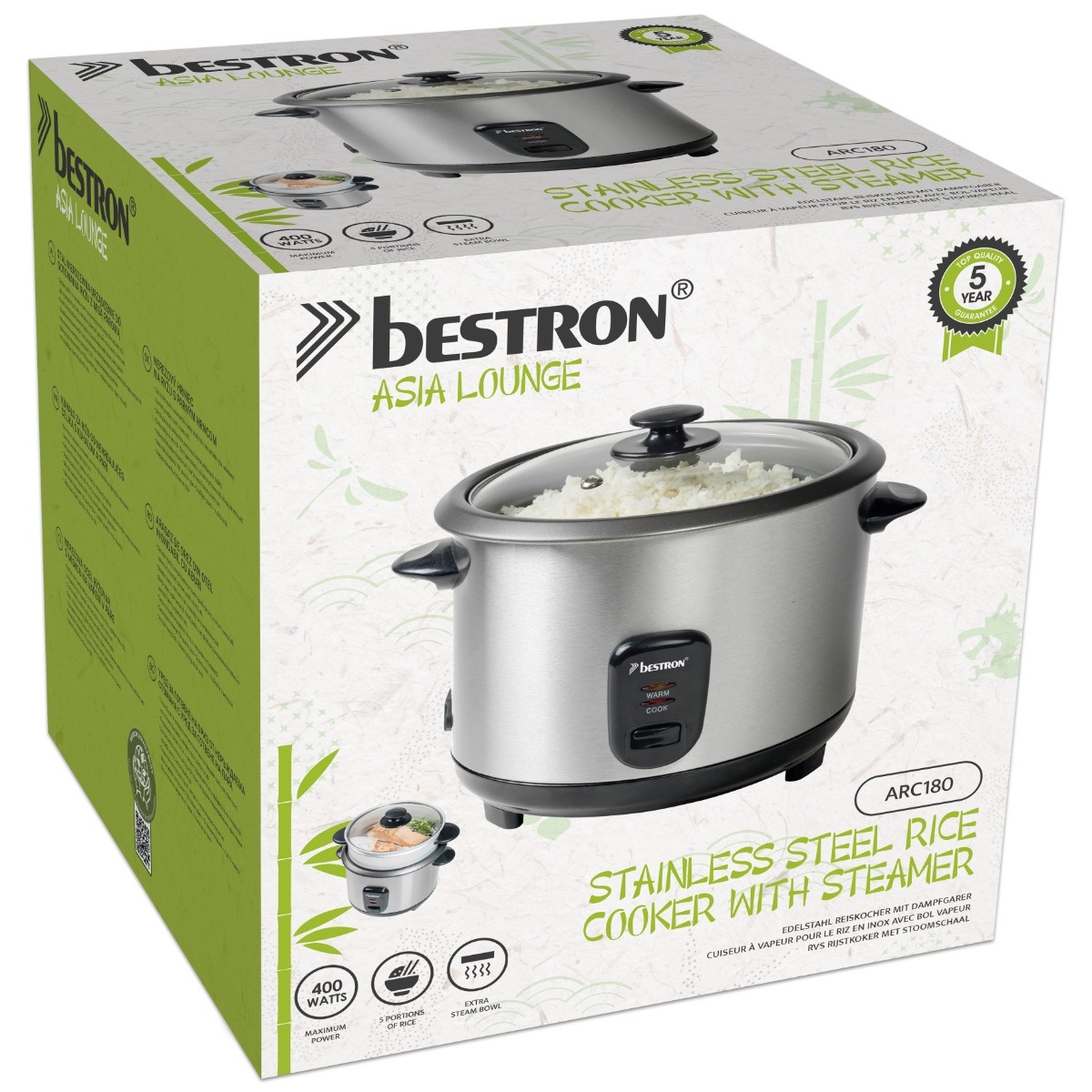 Weiterführende Links zu "Bestron ARC180 Edelstahl Reiskocher mit Dampfgarer 1.8 Liter"