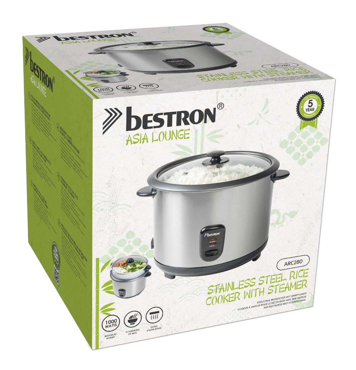Weiterführende Links zu "Bestron ARC280 Edelstahl Reiskocher mit Dampfgarer 2.8 Liter"