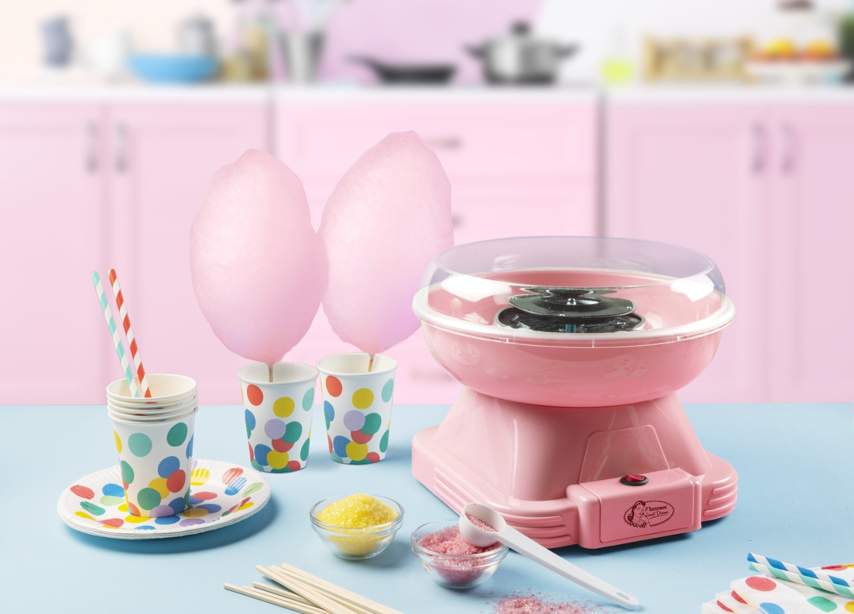 • Machen Sie flauschige Zuckerwatte wie auf dem Jahrmarkt • Inklusive Messlöffel und 10 Holzstäbchen für den sofortigen Start • Einfache Anwendung: 5 Minuten aufheizen lassen, dann etwas feinen Haushaltszucker in die Mitte der Schüssel geben und schon kann das Schleudern beginnen! • Dank der Saugnäpfe an der Unterseite steht es fest auf dem Tisch • Einfache Reinigung nach jedem Gebrauch mit einem feuchten Tuch