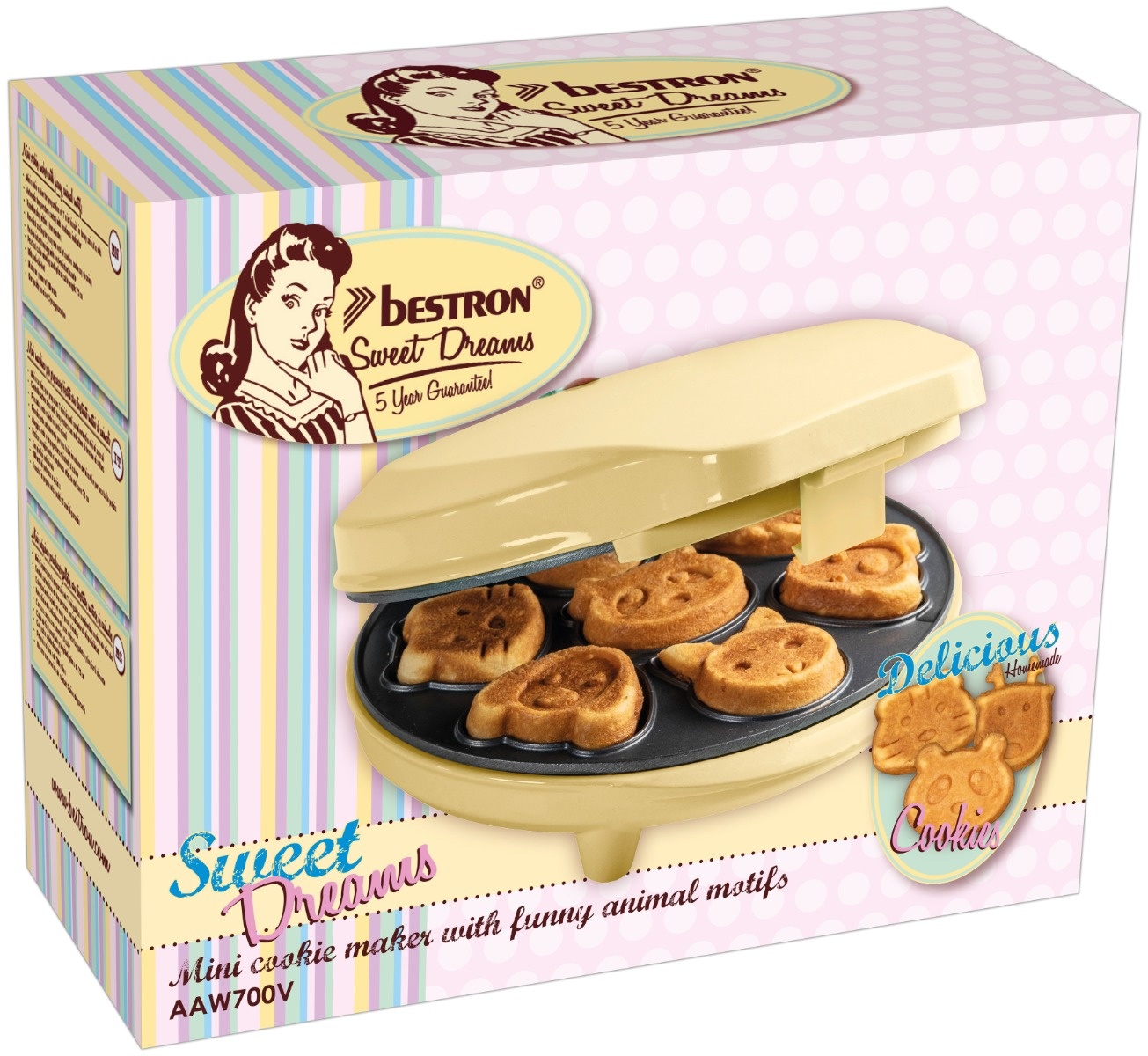"Bestron AAW700V Mini-Cookie-Maker in lustigen Tiermotiven vanilla"