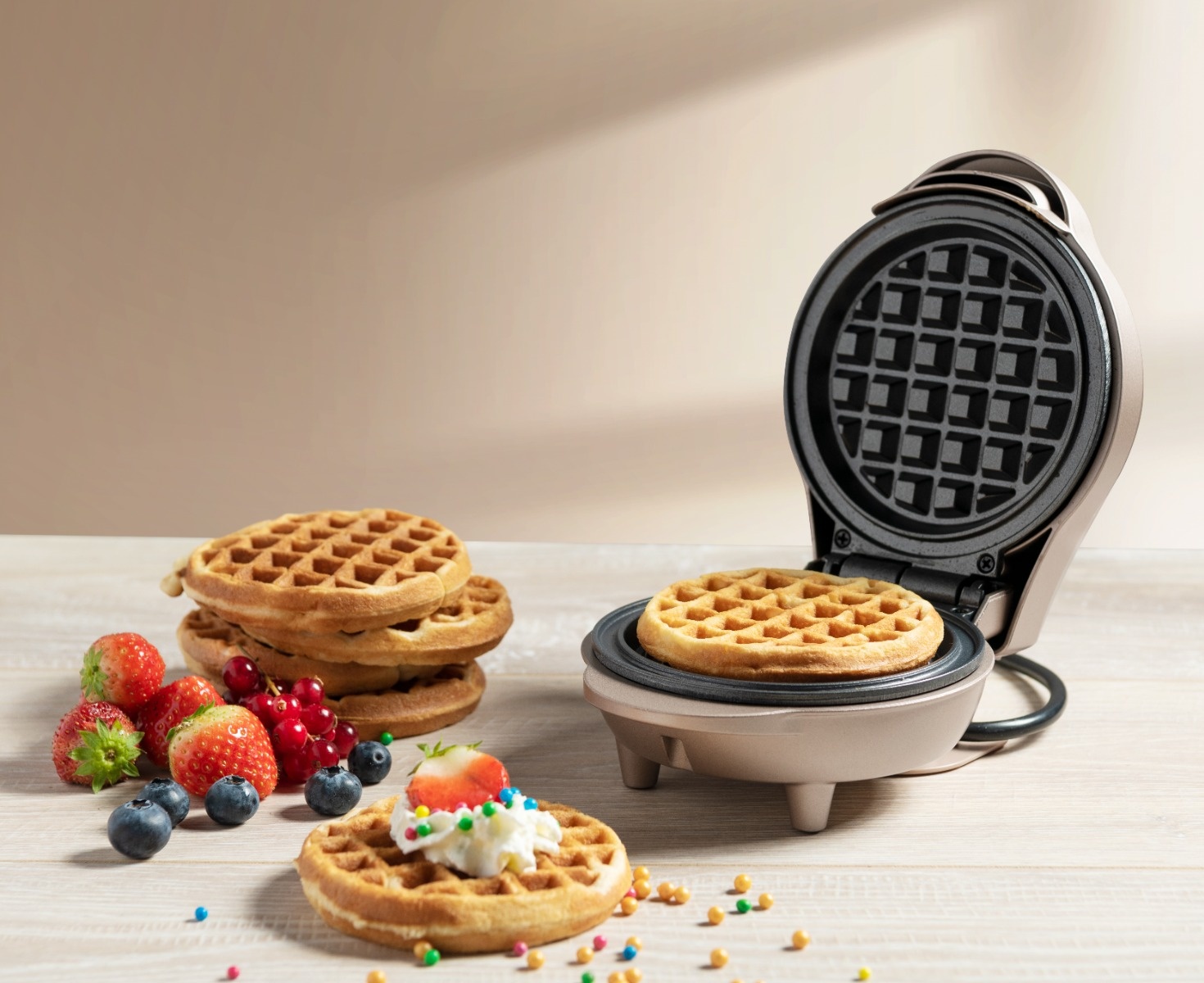• Waffelautomat für herrliche Brüssler Mini Waffeln• Hitzebeständiges Gehäuse• Antihaftbeschichtung• Kontrollleuchte für “gebrauchsfertig” und “An/Aus” • Wärmeisolierter Griff