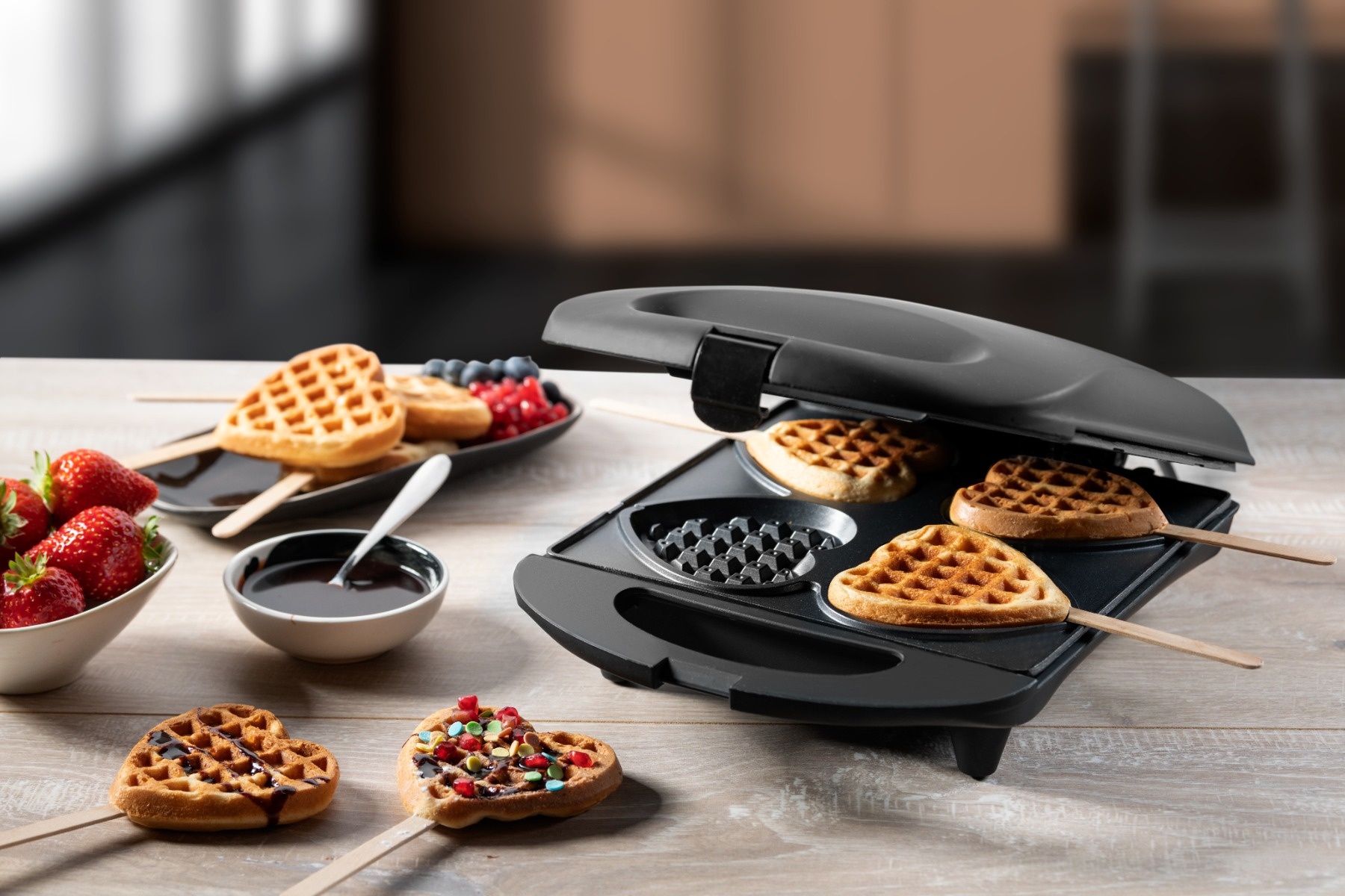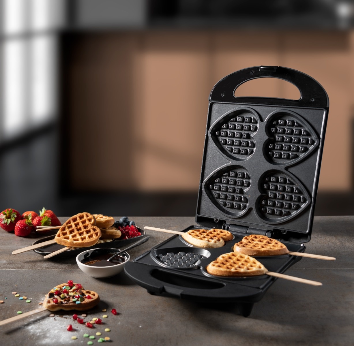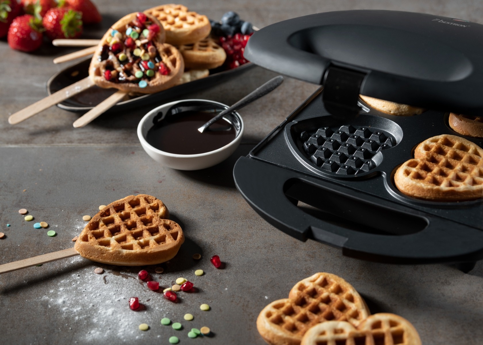 • Waffelautomat für herrliche Herzwaffeln am Stiel