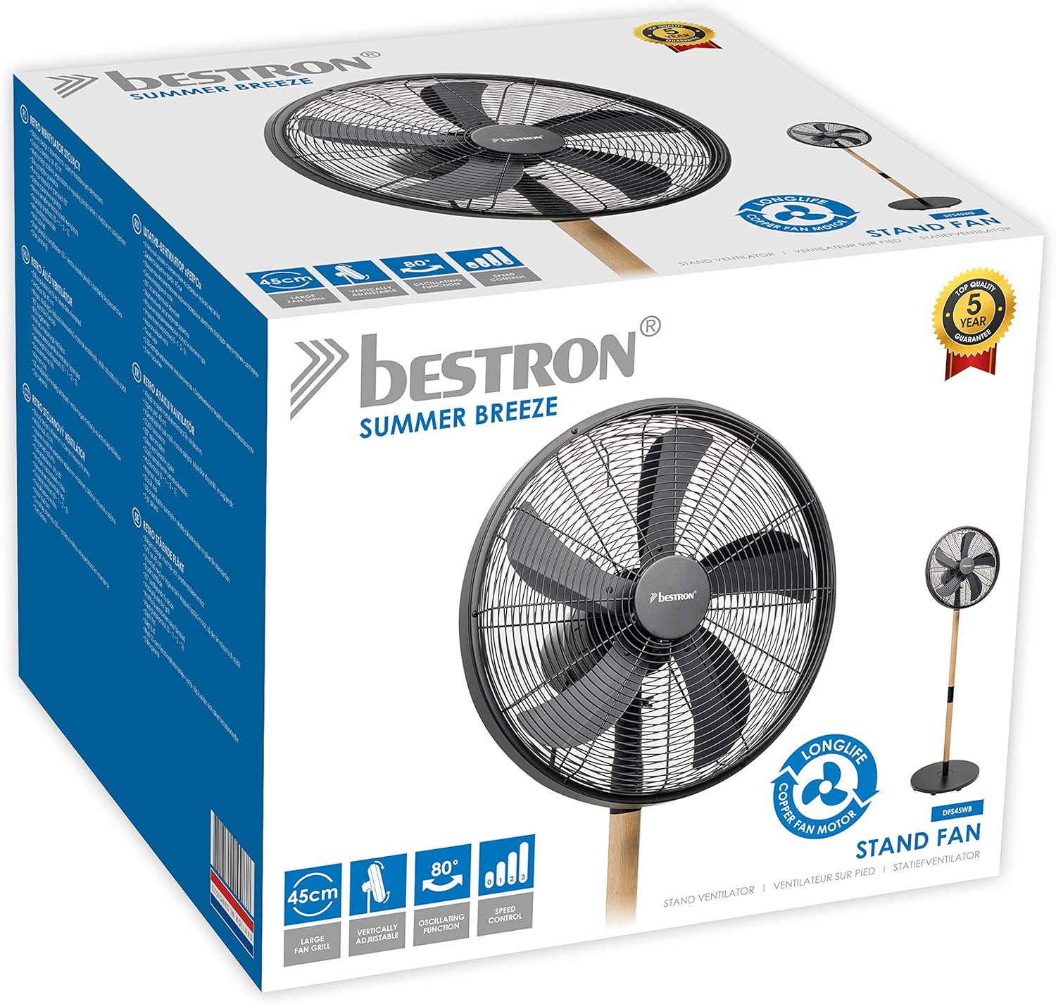 • Schutzgitter ca. 45 cm Durchmesser• Ausgestattet mit einem hochwertigen Kupfer Motor, daher robust und stabil• Hohes Luftvolumen• Schwenkfunktion von ca. 80°• Einstellbarer Neigungswinkel• Ventilatorkopf mit verstellbarem Neigungswinkel• Starke aerodynamische Ventilatorflügel• Geschwindigkeitsschalter (0 – 1 – 2 – 3)• Geräuschpegel 54 dB(A)• 50 Watt