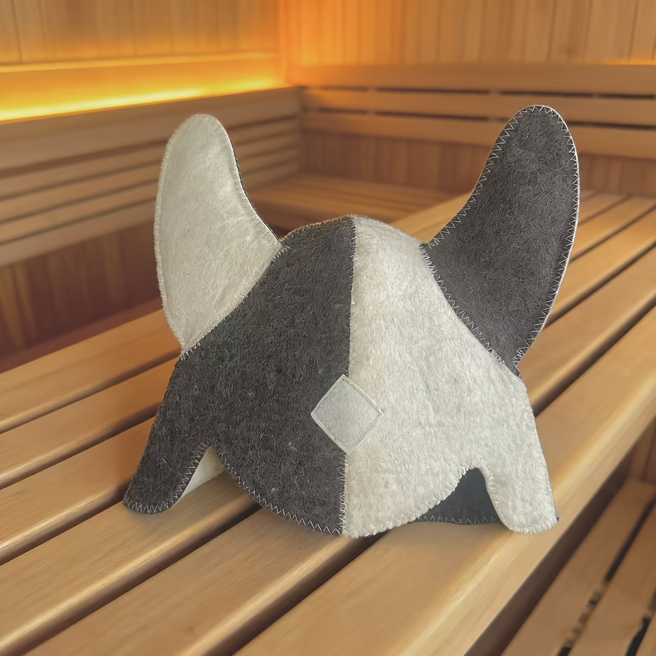 Weiterführende Links zu "Saunahut, Filzbadehut Saunamütze weiss-grau mit Hörner"