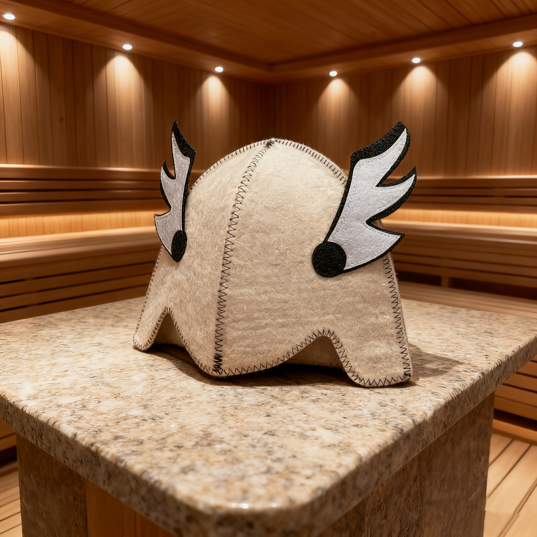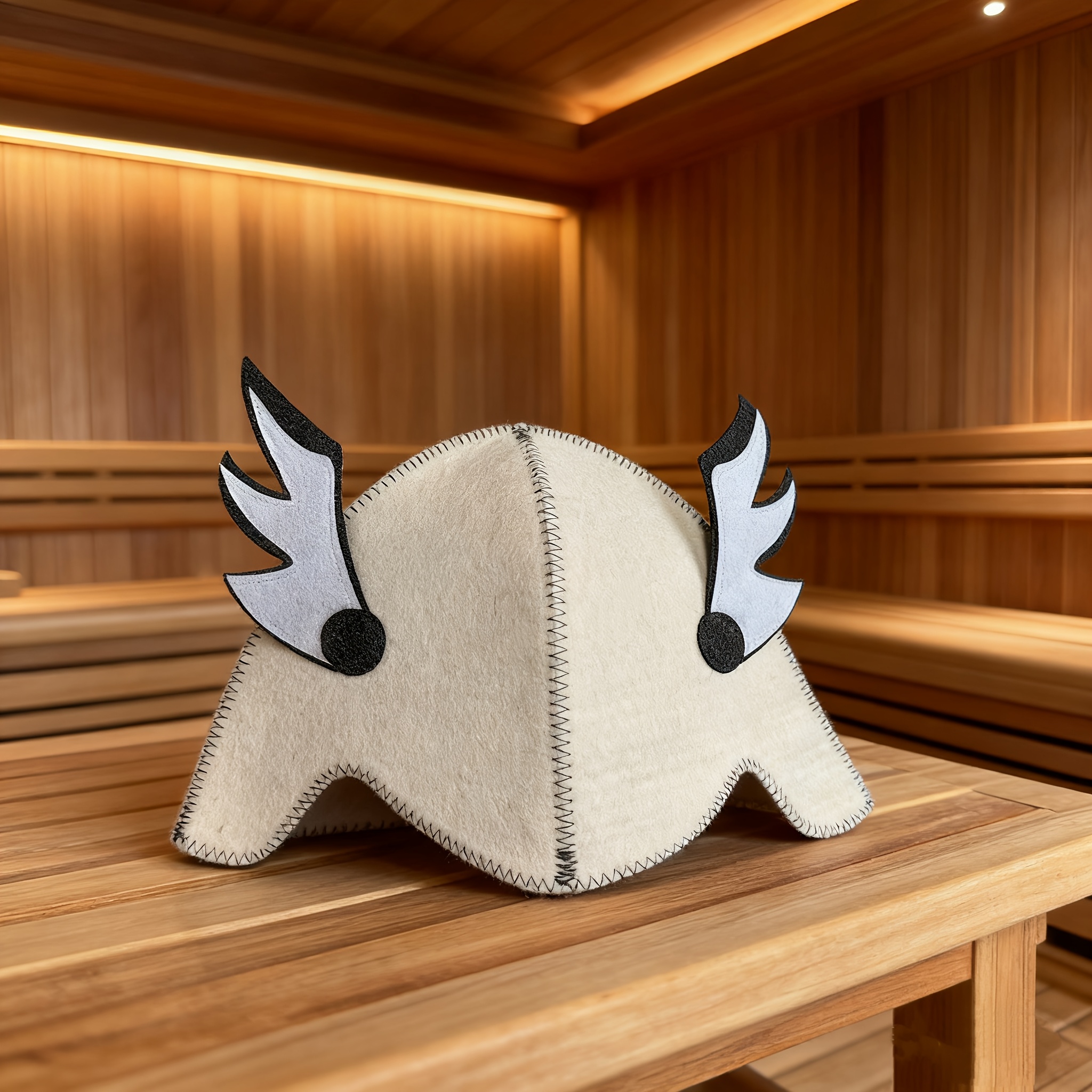 Weiterführende Links zu "Saunahut, Filzbadehut Bademütze Wollfilz, weiss mit Flügel"