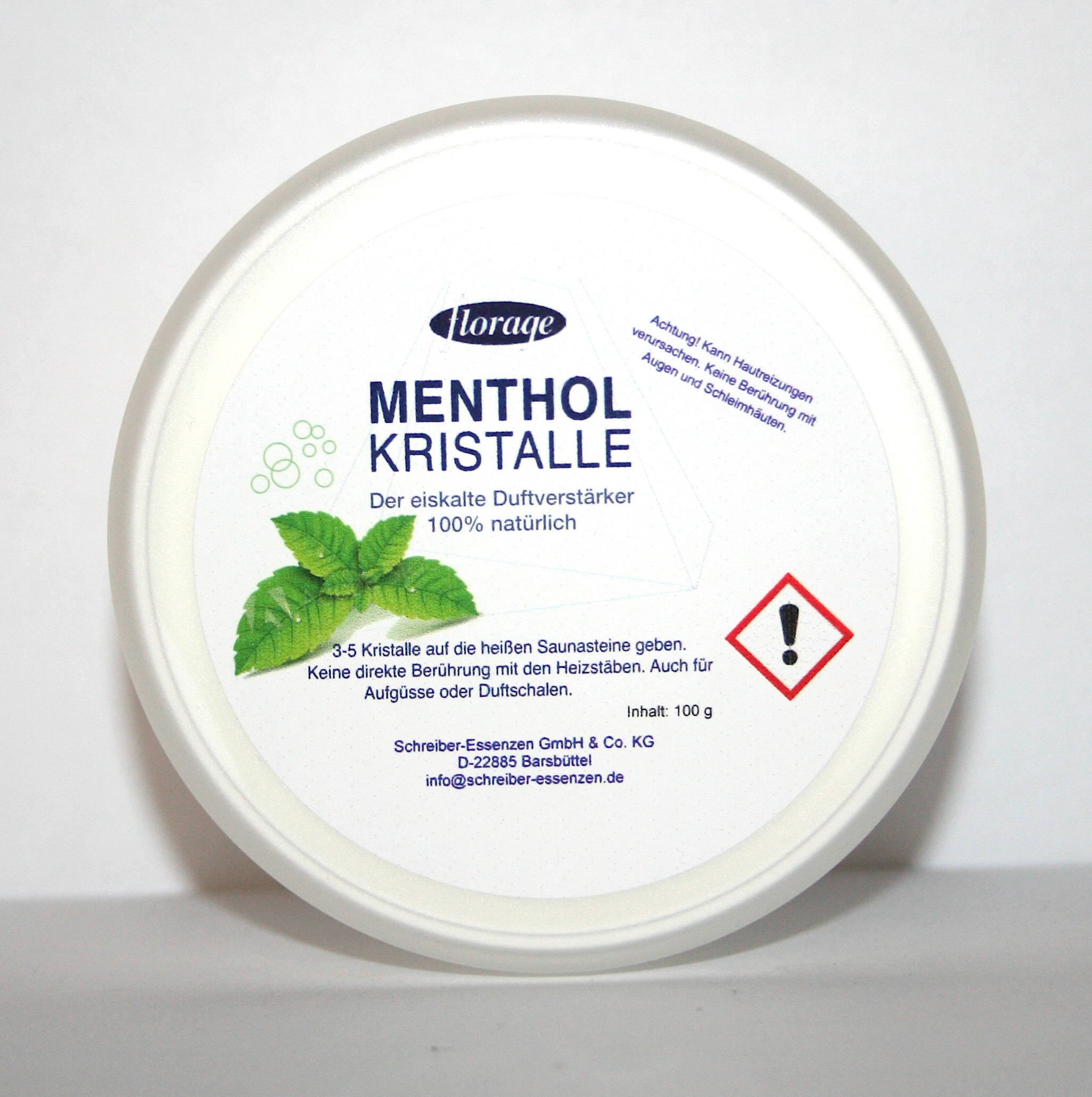 Die Verwendung von Mentholkristallen in der Sauna kann einen Saunaaufguss intensivieren oder für einen zusätzlichen Frische- und Kühleffekt sorgen. Mentholkristalle variieren in der Farbe von transparent bis weiß. Die Kristalle sind bei Zimmertemperatur fest, schmelzen aber bei 42-43°C.