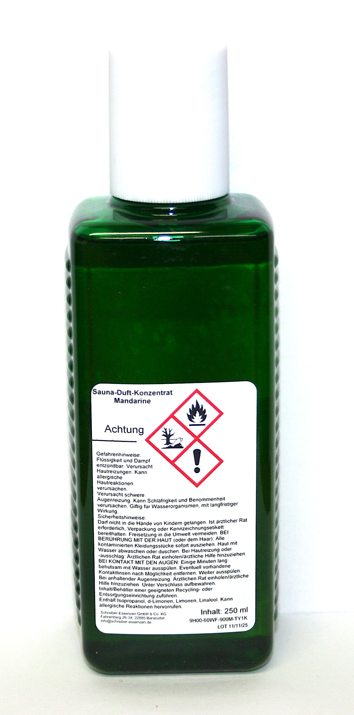 Lieferumfang: 1x 250 ml Saunaduft-Konzentrat Mandarine