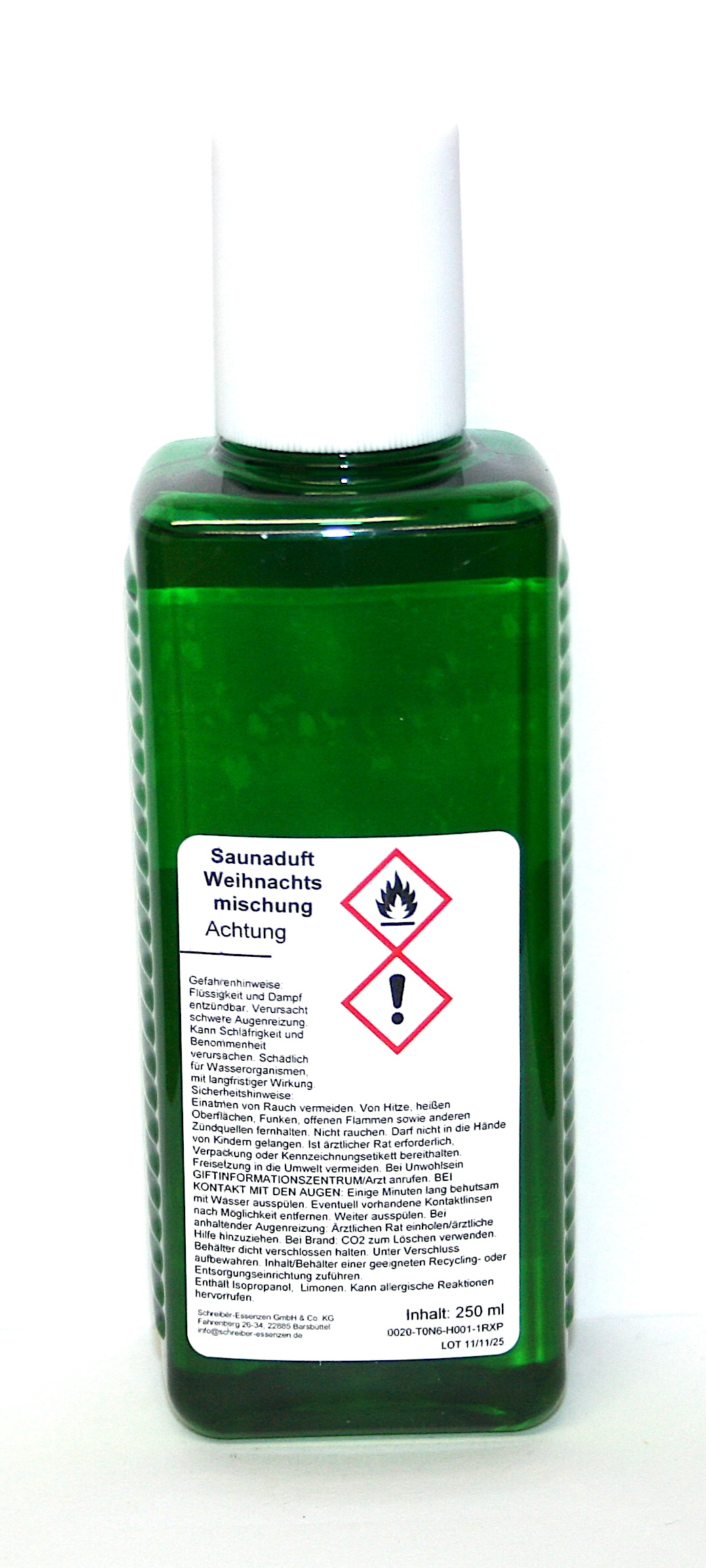 Lieferumfang: 1x 250 ml Saunaduft-Konzentrat Weihnachtsmischung