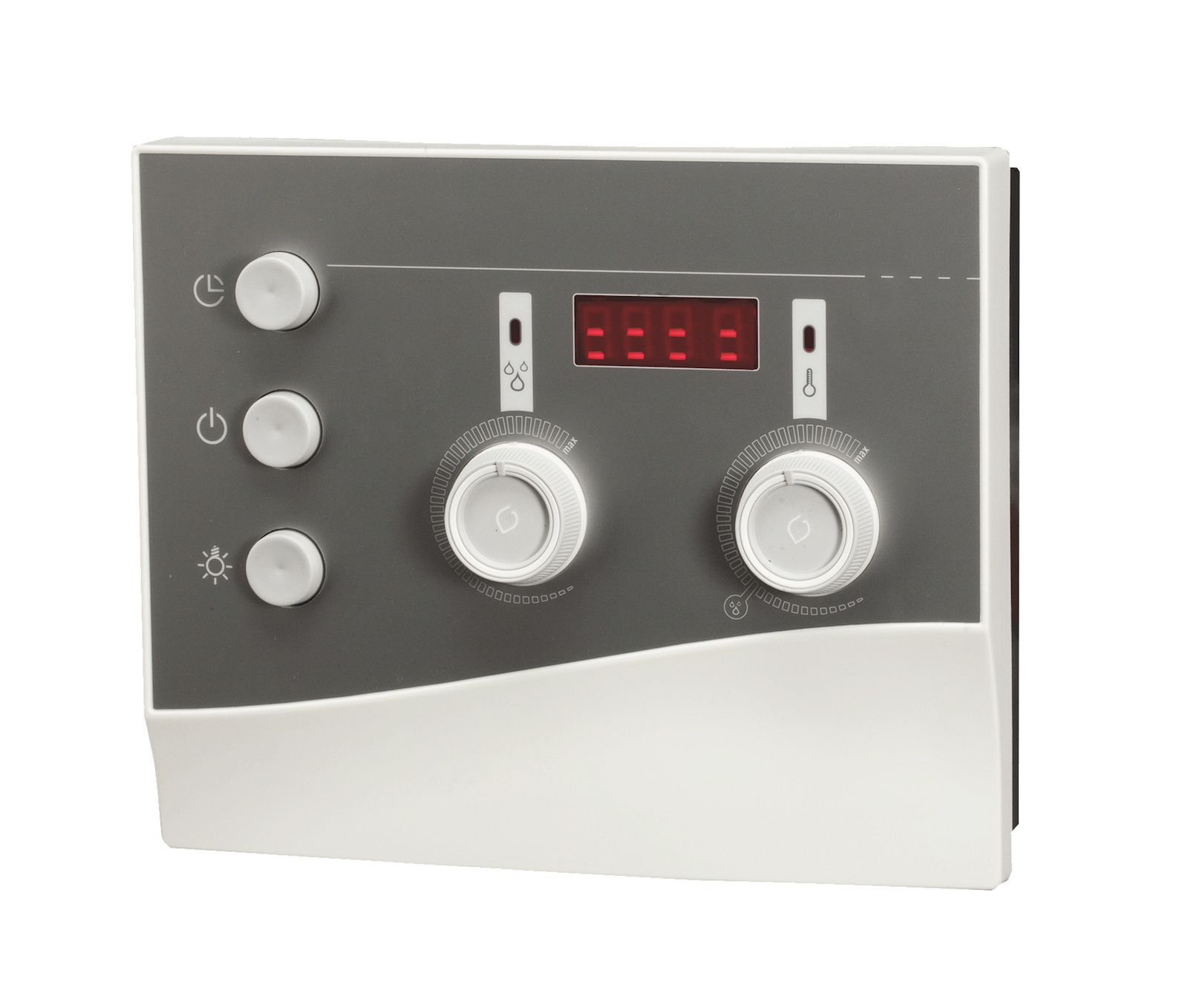 - Temperatur (Saunabetrieb) stufenlos regelbar von 40 °C bis 125 °C