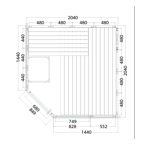 Kabinengröße: 2060 x 2060 x 2040 mm