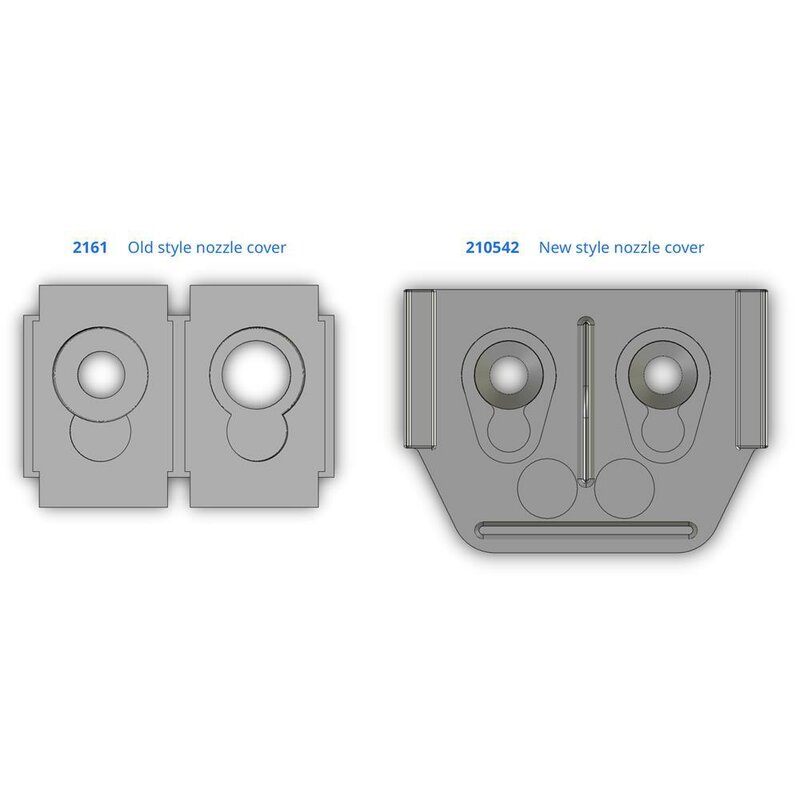 Im Sommer 2020 wurde der Druckkopf des Ultimaker 3 geändert. Geräte, welche danach erworben wurden, oder einen getauschten Druckkopf, bzw. Front Fan Bracket haben benötigen das "New Style" Nozzle Cover. Alle anderen können das weiterhin erhältliche "Old Style" Nozzle Cover nutzen.