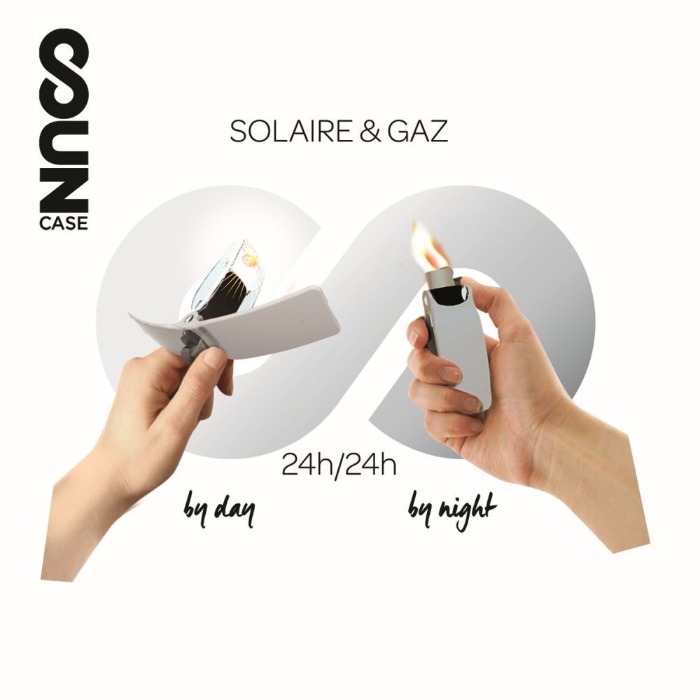Das SUNCASE ist das erste Solarfeuerzeug, das die Nutzung von bi-Energie (Solar und Gas) für eine 24/24 Effizienz bei jedem Wetter bietet. Es ist kompatibel mit einem BIC-mini Feuerzeug (c) J25, für das ein passender Schacht im SUNCASE vorhanden ist.